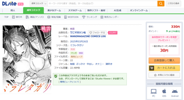 DLsiteは20年以上実績のある合法の電子書籍サイトです。